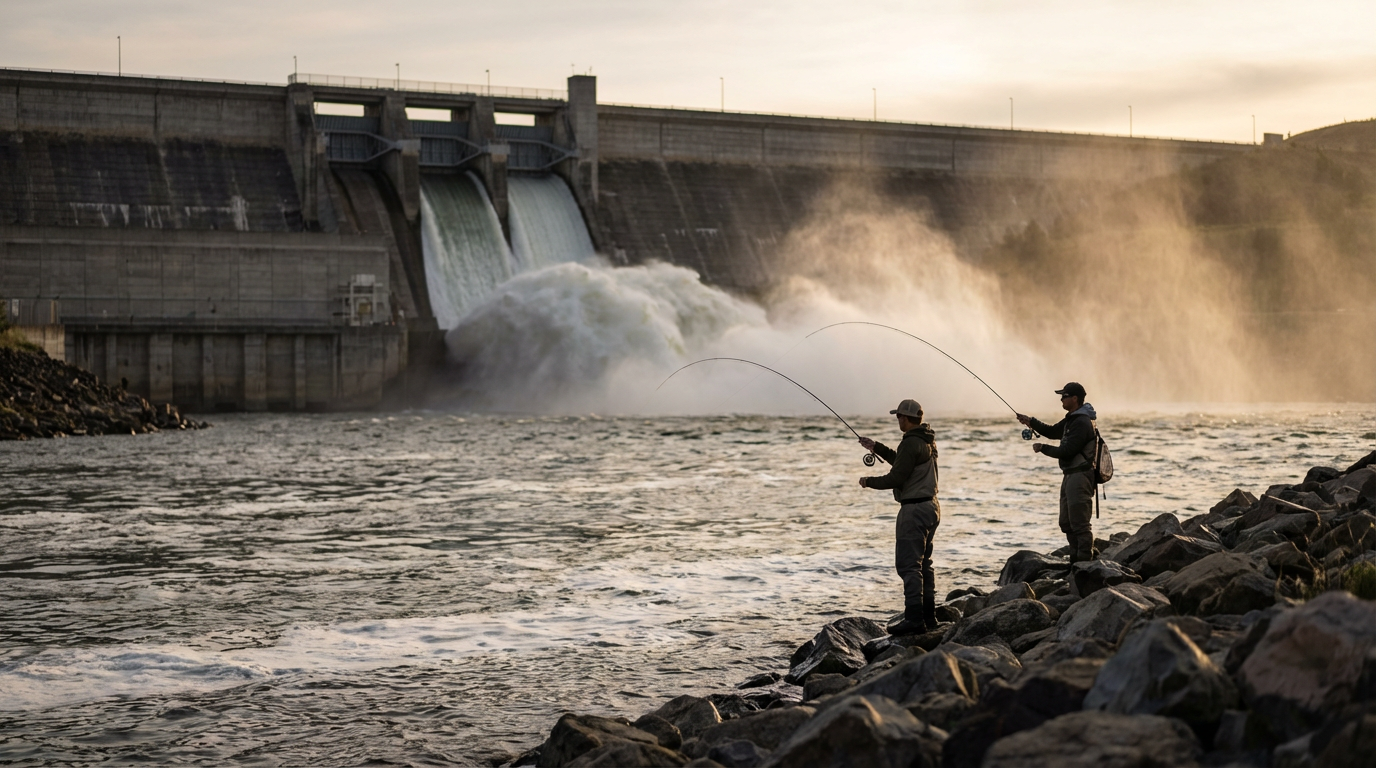 - Night releases — if the dam runs a consistent nighttime generation schedule, catfish often learn the pattern and stack up in advance.